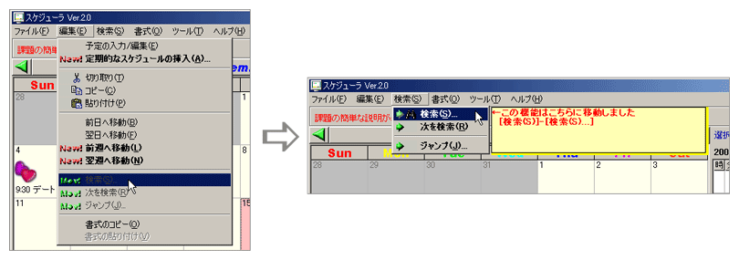新バージョンでの正しい項目が自動的に表示される(右)
