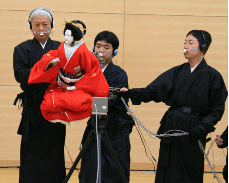 を科学的に分析することにあります.文楽とは,言語情報を用いずに3人の人形遣いがイキを合わせて,本来は人工物でしかない文楽人形をあたかも人間がそこにいて動作しているかのように操作する日本独自の伝統芸能です.したがって文楽は,上記の1.の「人間らしい動き」の解析と2.のイキと「人間らしい動き」の関係の解析に格好の材料を提供するため,文楽の解析を本研究提案のメインターゲットとして定めました.
